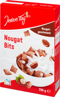 Die Jeden Tag Nougat Bits 750 g verbinden knusprige Getreidebits mit Nougatcreme und fein gerösteten Haselnüssen – ideal als süßes Topping für Müsli oder als Snack zwischendurch. Mit 10 % gemahlenen Haselnüssen in der Füllung bieten sie ein intensives nussiges Aroma und echte Nougatnote. Die Mischung ist vielseitig verwendbar – pur genießen oder in Kombination mit Milch, Joghurt oder Eis. Hergestellt von der Jeden Tag Marke, steht sie für gute Hausmarkenqualität zum attraktiven Preis.